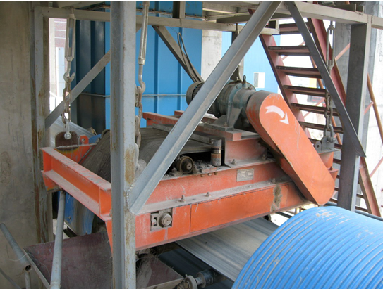 6、除鐵器安裝在皮帶機頭部時,因物料有前沖力和處于松散狀有利于除鐵,但除鐵器底部的主動輪應為非鐵磁性材料。